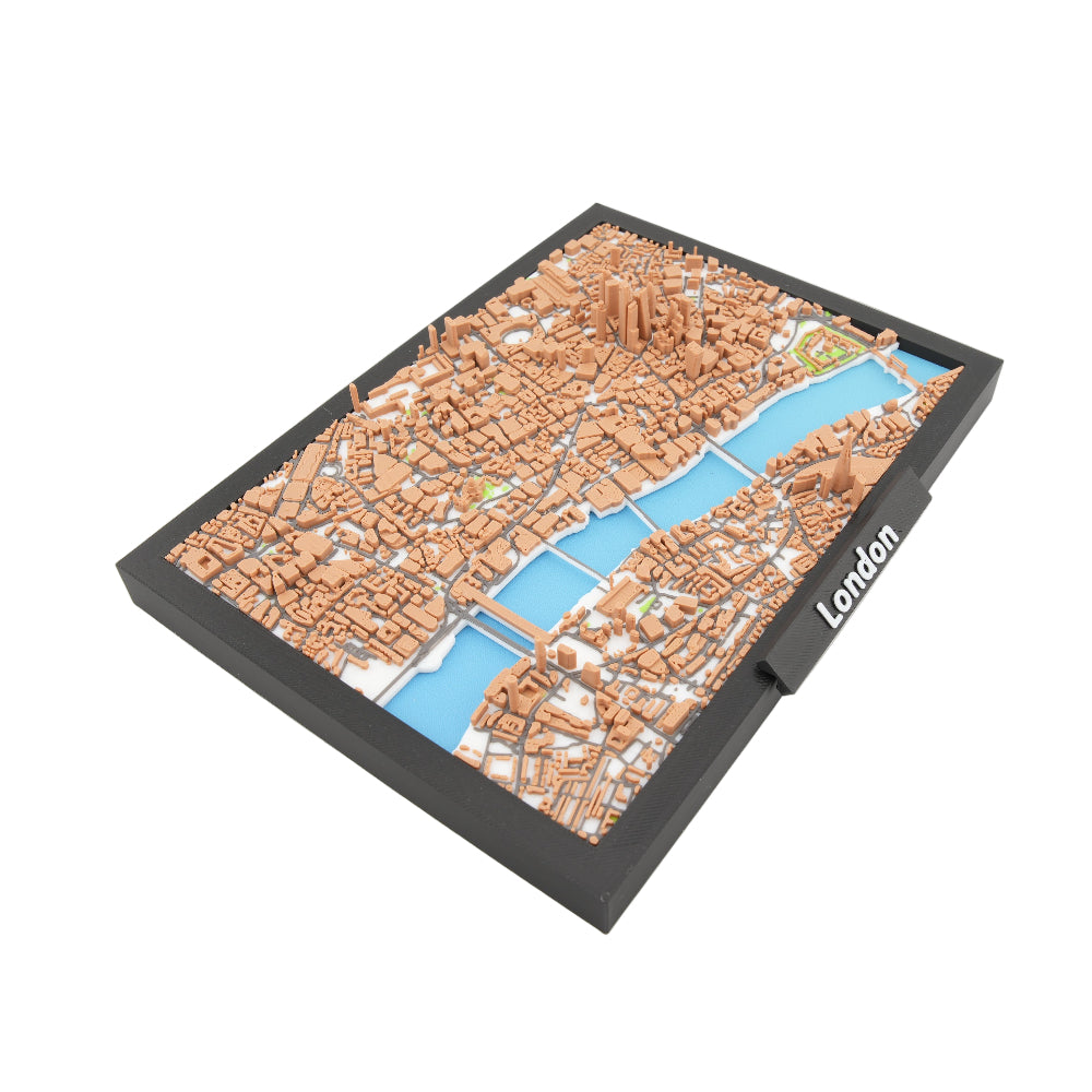 Experience the architectural character and vibrant layout of London with this precision crafted 3D miniature city map. Built from real geographic and structural reference data, this raised cityscape highlights central London’s buildings, riverfront, bridges, and distinctive districts in tactile detail. Each structure is individually modeled to create depth and dimension, offering a visually striking representation of the capital.