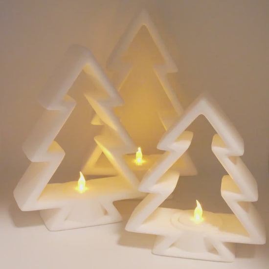 Create a soft, inviting holiday glow with this modern Christmas tree LED tealight holder. Crafted with a clean, minimalist silhouette, this decorative piece adds a warm seasonal ambiance to mantels, dining tables, shelves, and festive centerpieces. The open tree design diffuses light beautifully, allowing the included LED tealight to cast a gentle flicker that mimics a real candle while remaining completely safe for indoor use.