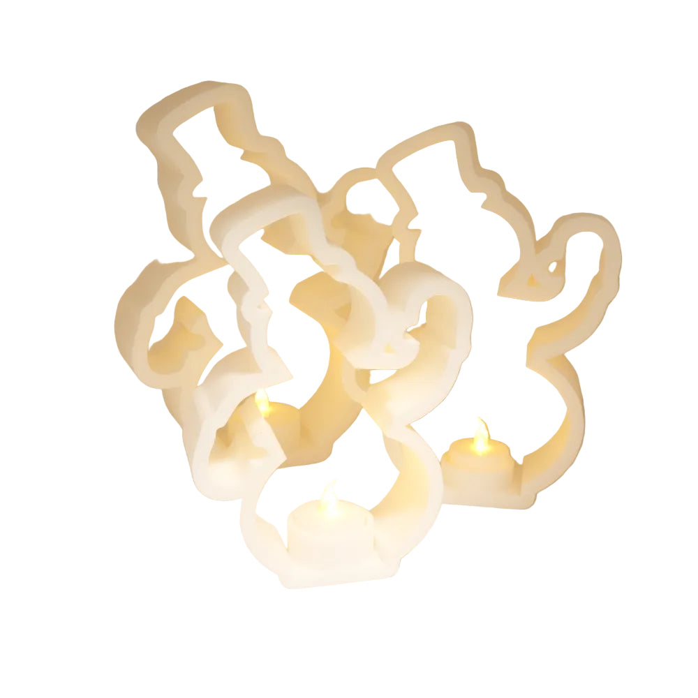 The open 3D outline allows light to radiate softly through the snowman shape, adding depth and seasonal character to living rooms, entryways, offices, and festive displays. Designed for LED tealights, it offers a safe, flame-free lighting option perfect for homes with children, pets, or high-traffic areas.