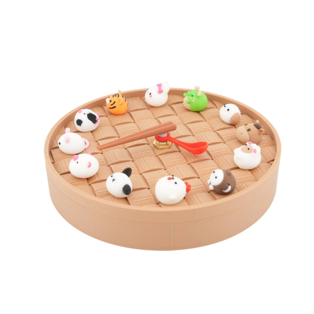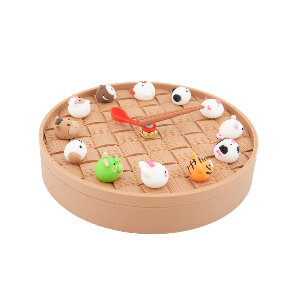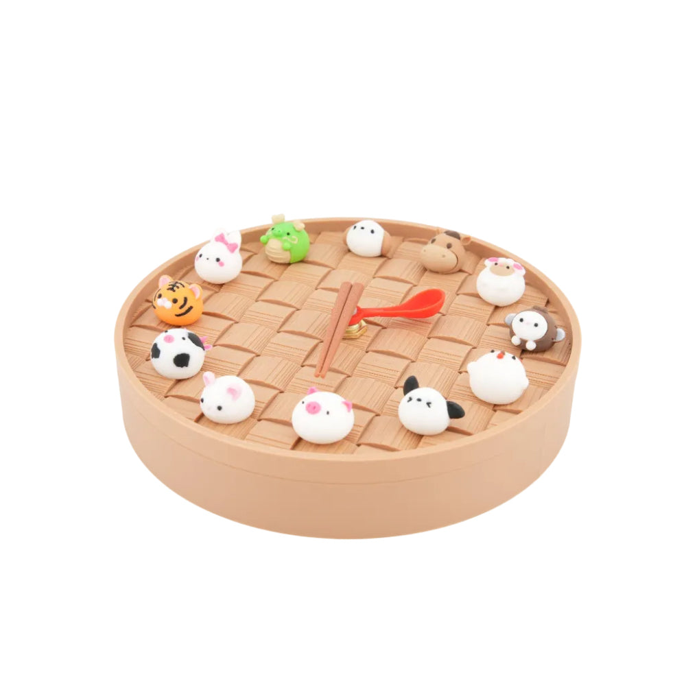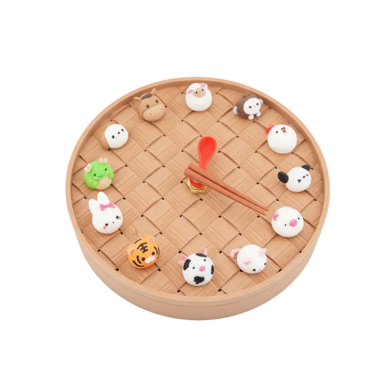 Featuring all twelve zodiac animals arranged in a round display inspired by classic steamer basket styling, this piece works as both functional desk clock and collectible zodiac decor. Each animal represents a year in the lunar calendar, making this a thoughtful Chinese zodiac gift for birthdays, Lunar New Year, housewarmings, or zodiac enthusiasts.